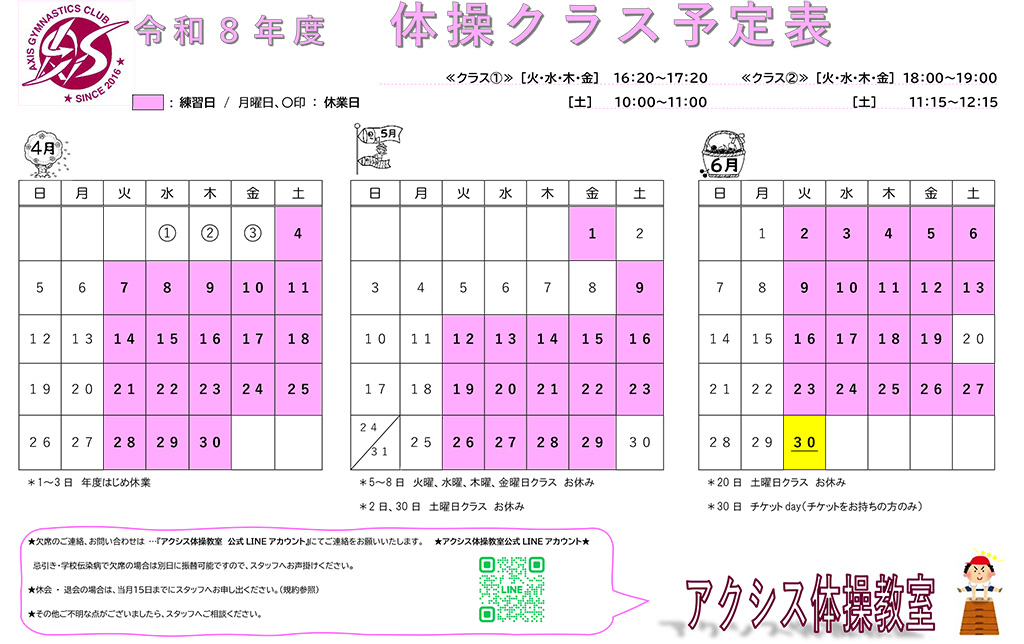学校体育プログラムを中心に活動します。逆立ちや逆上がりなどの技の習得を目指します。